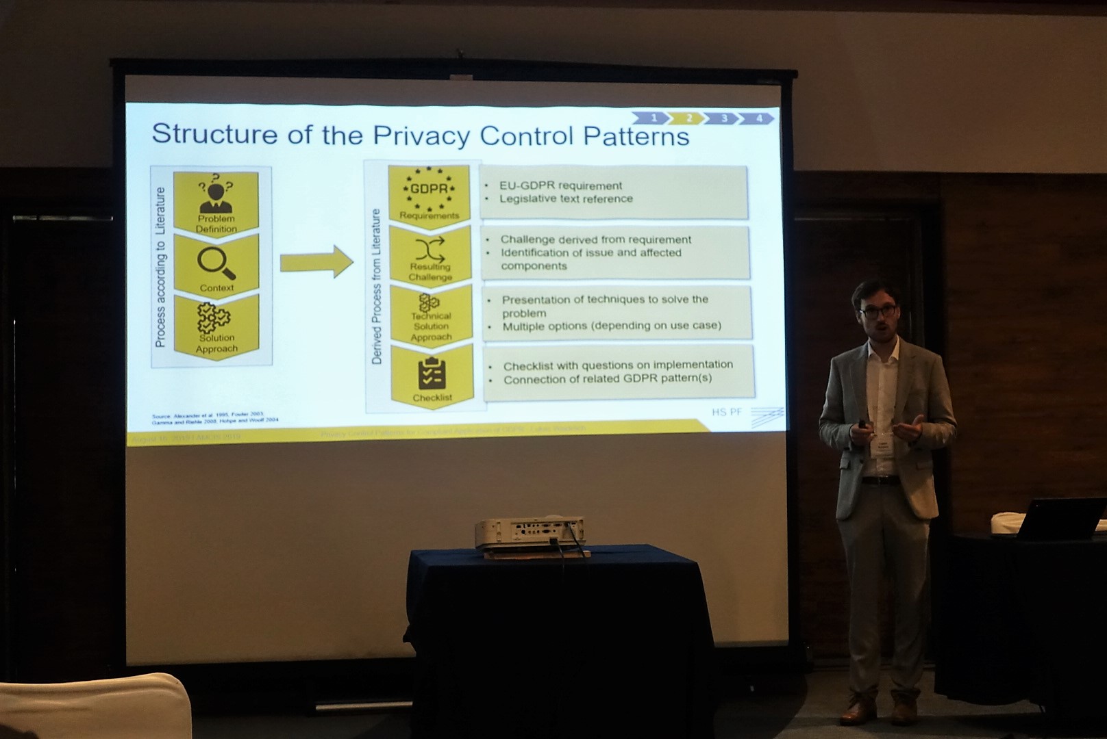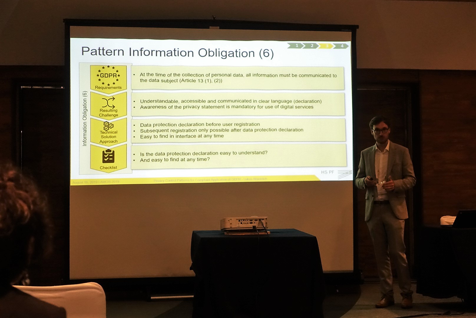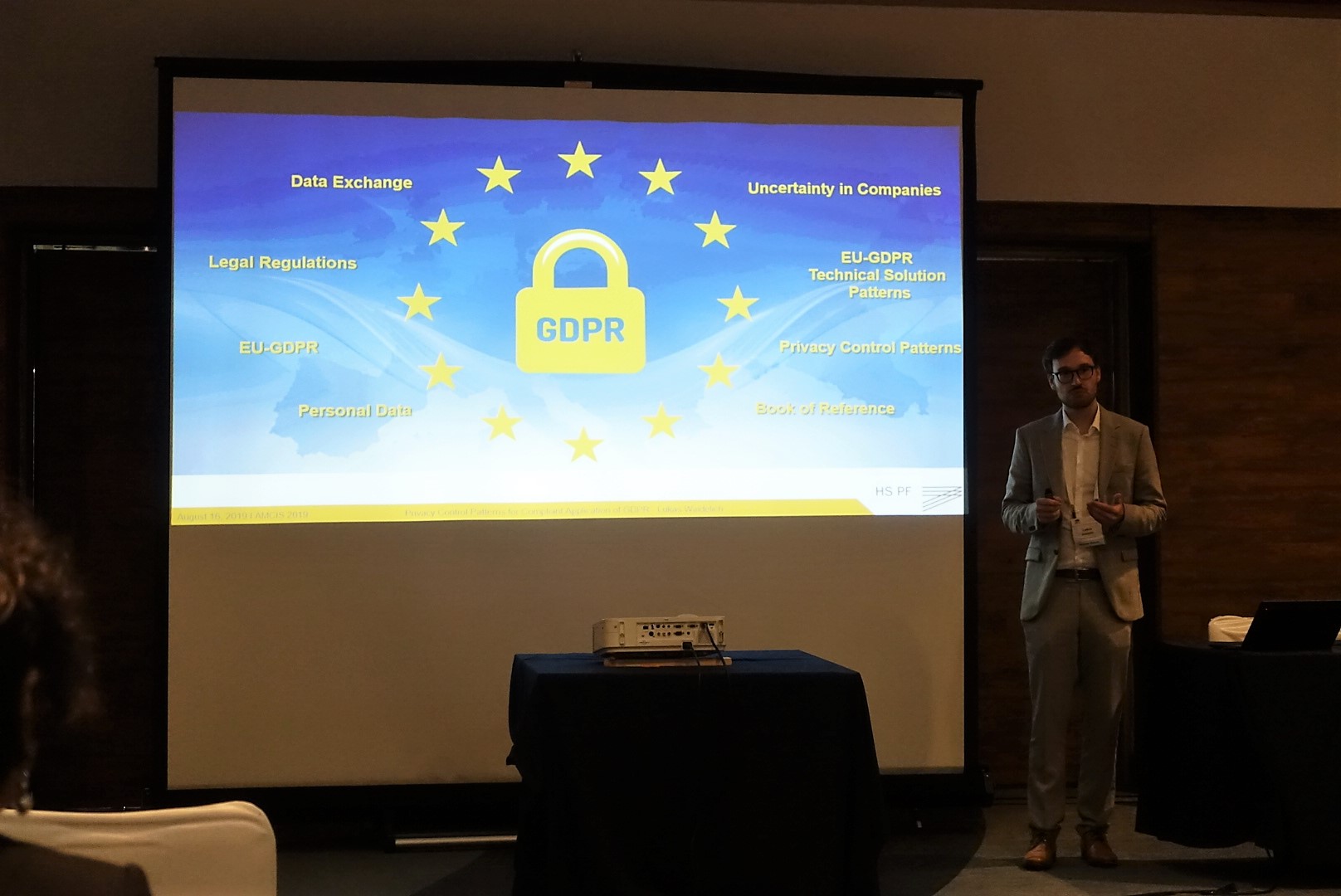 Das Papier, dass in Zusammenarbeit mit dem Forschungszentrum für Informatik FZI entstand, trägt den Titel „Privacy Control Patterns for Compliant Application of GDPR“. Inhalt der Veröffentlichung ist die Idee aus konkreten Anforderungen der DSGVO Muster in Form von technischen Templates abzuleiten um konforme Dienste zu ermöglichen. Die Muster sind identisch aufgebaut. Zuerst wird der Gesetzestext aus der DSGVO genannt, der die konkrete Anforderung beschreibt. In einem zweiten Schritt wird die daraus resultierende Herausforderungen genannt. Dabei werden die entsprechenden Bereiche (des IT-Systems) genannt, auf welche die Veränderungen zutreffen. Der dritte Schritt beschreibt einen möglichen Lösungsansatz um die Anforderungen der DSGVO konform umzusetzen. Abschließend gibt eine Checkliste Ratschläge, wie die technische Lösung umgesetzt werden kann. Insgesamt wurden 13 Muster entwickelt, die auf Anforderungen der DSGVO beruhen. Davon werden acht Muster in der Veröffentlichung genauer beschrieben. Nach der Präsentation konnten die Zuschauer gezielte Fragen an den Referenten richten, welche in einer großen Runde diskutiert wurden. Durch diesen Gedankenaustausch entstanden neuen Ideen, wie der aktuelle Stand der Forschung zukünftig weiterentwickelt werden kann. Die Veröffentlichung ist hier zu finden.