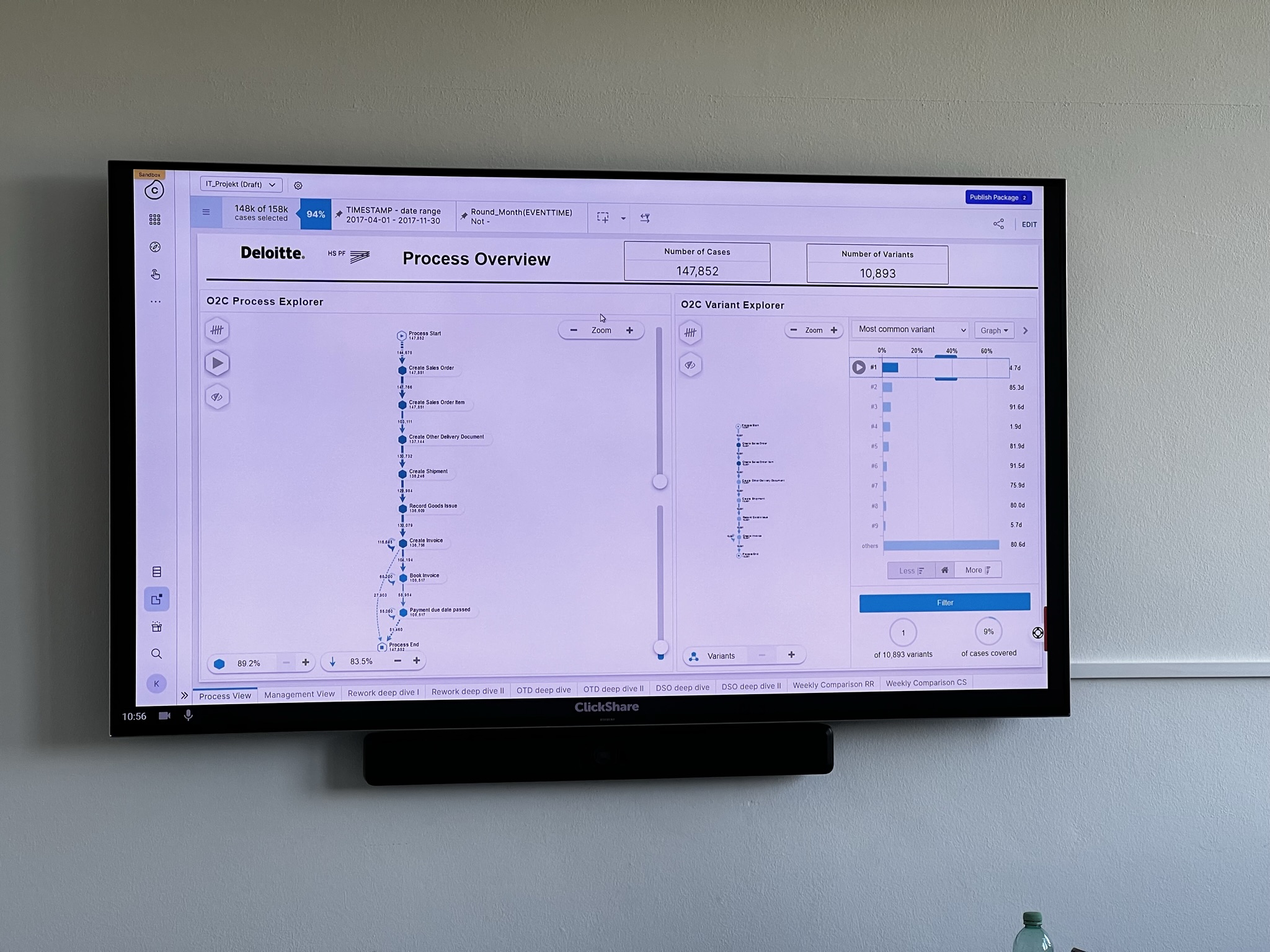 Das Seminar bot den Studierenden eine einzigartige Gelegenheit, praktische Erfahrungen zu sammeln und ihr theoretisches Wissen auf einen realen O2C-Prozess anzuwenden, wobei Celonis als Prozess-Mining-Tool eingesetzt wurde. Unter Anleitung erfahrener Experten von Deloitte analysierten die Studierenden den bestehenden Prozess, identifizierten Ineffizienzen und Engpässe. Mit ihrem technischen Know-how implementierten sie erfolgreich interaktive Dashboards, die Echtzeiteinblicke in die Verkaufsaktivitäten des Kunden lieferten. Mit Celonis identifizierten die Studierenden erfolgreich die Ursachen von Ausführungslücken und quantifizierten die Geschäftsauswirkungen ihrer Behebung in drei verschiedenen Anwendungsfällen.