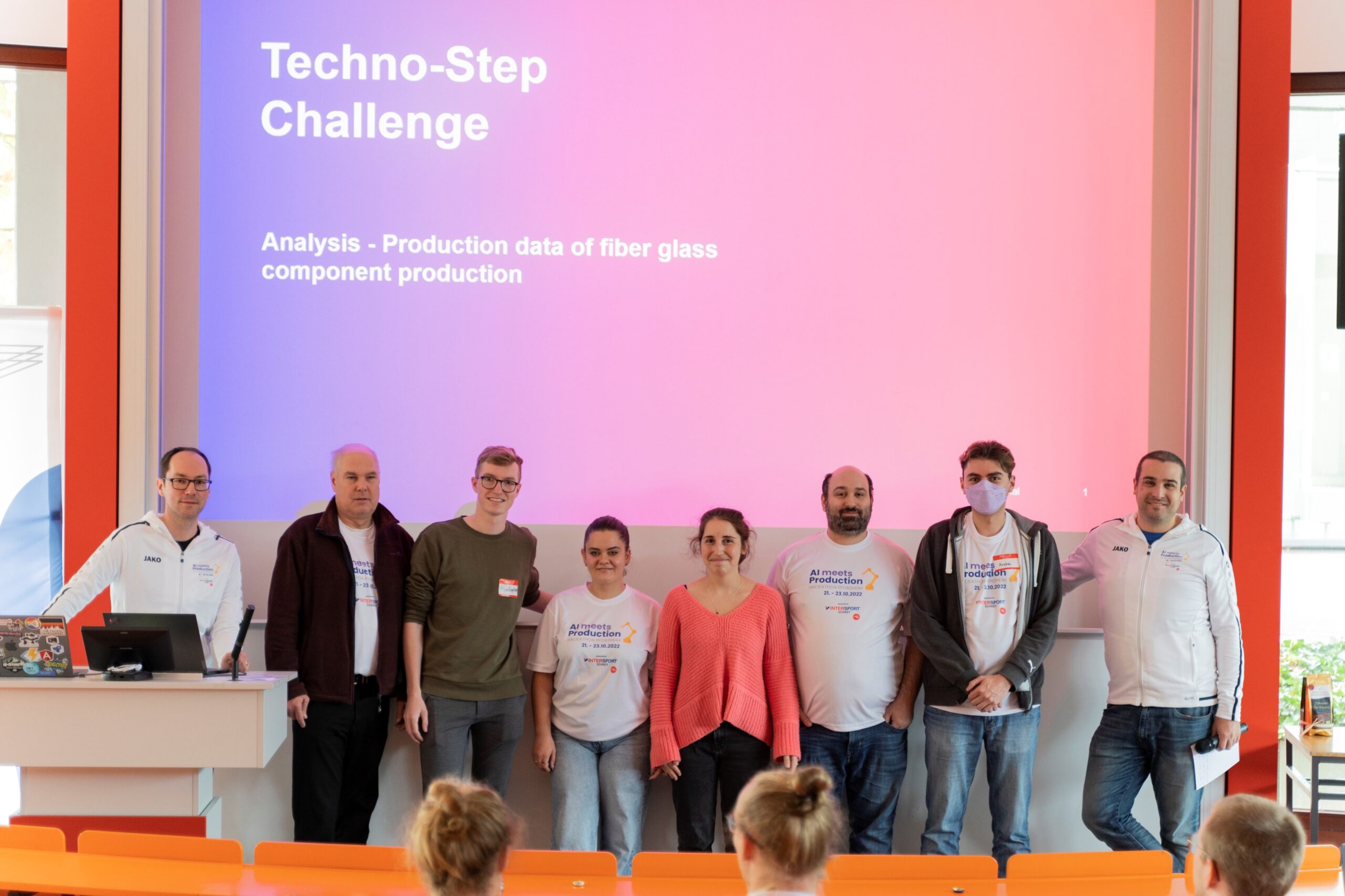 Zahlreiche Teilnehmende arbeiteten vor Ort bis in die frühen Morgenstunden am Sonntag, andere übernachteten gar vor Ort. Als am Sonntagmorgen gegen 8:30 Uhr das Frühstück serviert wurde, stieg die Zahl der Anwesenden deutlich an. Die Gruppen nutzten die Chance und finalisierten ihre Arbeiten an den KI-Modellen. Parallel dazu bereiteten Sie den Pitch für die Ergebnispräsentation vor. Gegen 14 Uhr, kurz nach dem Mittagessen, machten sich die Teams auf, um ihre Arbeit zu präsentieren. Von den präsentierten Ergebnissen und den schnellen Fortschritten waren die Anwesenden begeistert. In diesem Sinne hatte der Hackathon 5 Gewinner-Teams. Für die von den Sponsoren und Partnern bereitgestellten Preise musste trotzdem eine Siegerermittlung vorgenommen werden. Dies geschah auf demokratische Art und Weise. Nach den Pitches konnten die Teilnehmenden klatschen. Der lauteste Applaus resultiert mit im ersten Platz. Dieser ging an das Team Witzenmann, die mit ihrer Arbeit an FG-Simulation Rechenzeit einsparen konnten. Der zweite Platz geht an das Team von Blanc & Fischer mit dem Thema Labelscanner – optical character recognition. Den dritten Platz eroberten sich das Team von Techno-Step mit der Analyse von Produktionsdaten von Glasfaserkomponenten. Dahinter folgte ein weiteres Team von Witzenmann, die sich um die Optimierung von Schweißprozessen in der Produktion beschäftigt haben. Das zweite Team von Blanc & Fischer experimentierte mit Natural Language Processing und entwickelte einen spannenden Ansatz für die Fehlersuche und Reparatur und sicherte sich damit den fünften Platz.