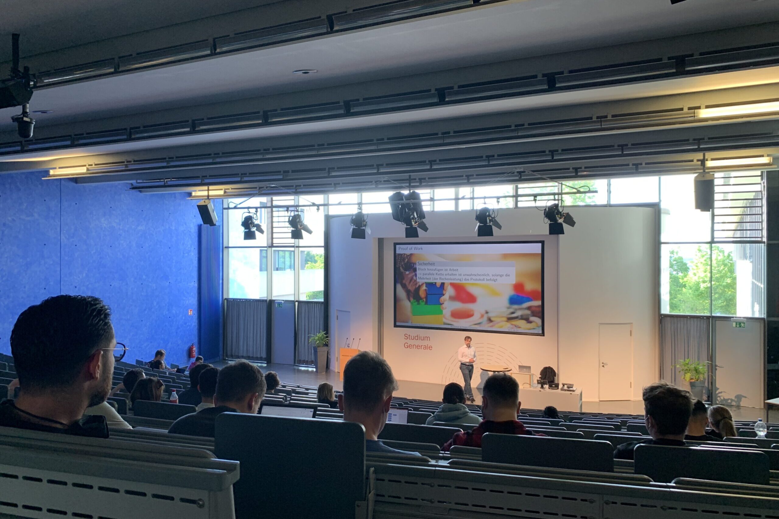 Der mit Spannung erwartete Vortrag zum Thema Blockchain & Crypto Currencies wurde von Christian Henrich am 17 Mai gehalten. Der Professor war dafür extra von der Hochschule Albstadt-Sigmaringen angereist. Belohnt wurde dies mit zahlreichen Teilnehmenden vor Ort im Audimax und im YouTube-Onlinestream.
