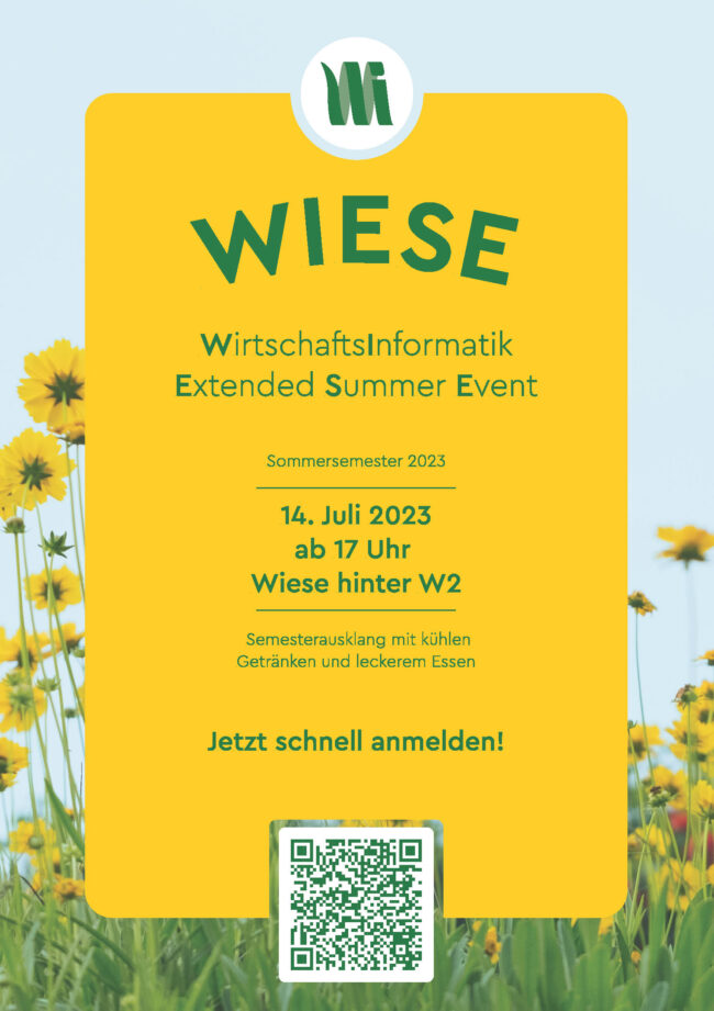Pünktlich zum Semesterabschluss des Sommersemesters 2023 kehrt die traditionelle WIESE (WirtschaftsInformatik Extended Summer Event) zurück! Der Fachbereich Wirtschaftsinformatik um die Studiengänge Business Administration/Digital Enterprise Management (BDEM), Wirtschaftsinformatik – Management &…